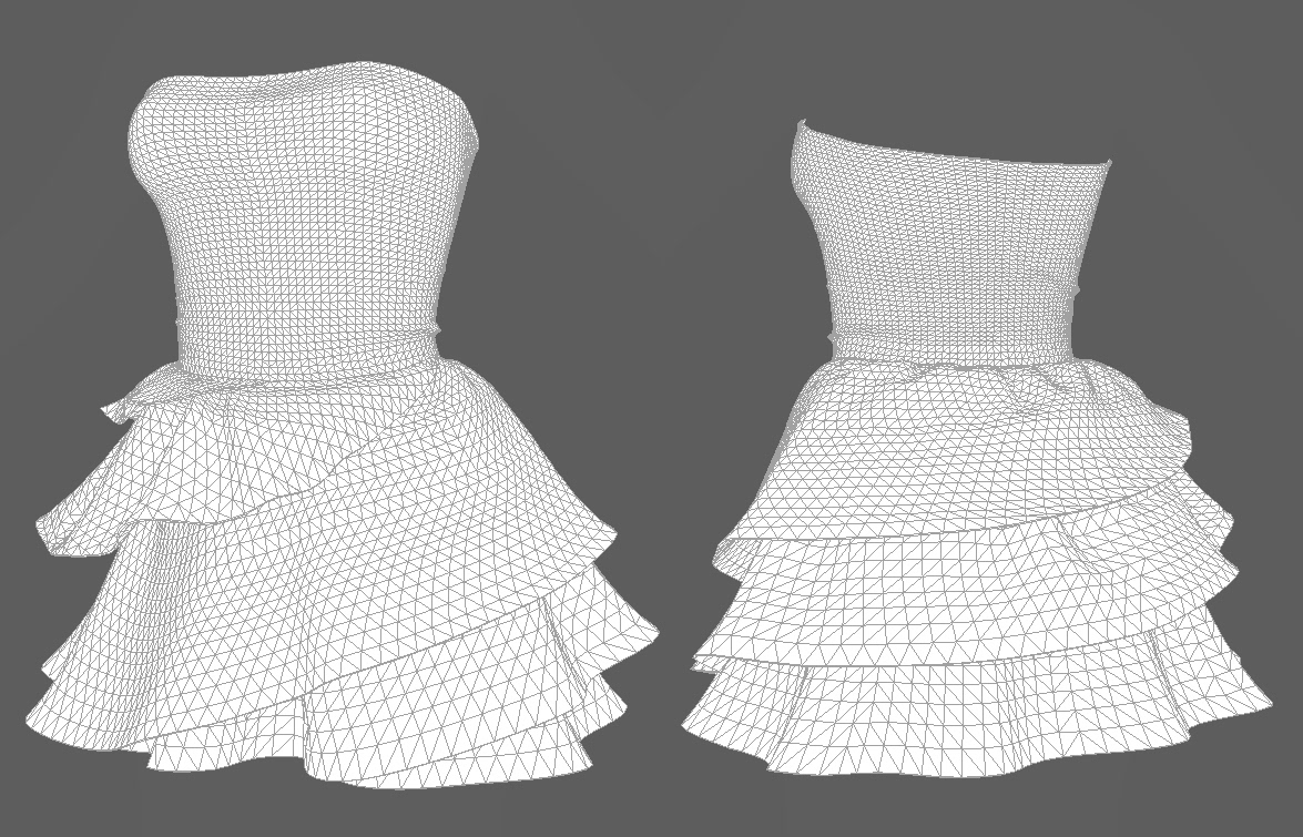 Finished model, low poly with normal maps and shading generated from simulated cloth - Maya